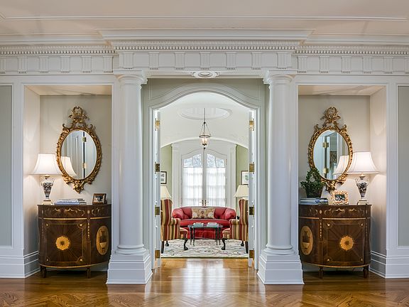 According to the Summit Historical Society, a few grand estates were built on Summit’s Northside as ‘country homes’ during the early 1900s. Twin Beeches, like Twin Maples, now the stately Summit Fortnightly Club, was one such home. The present day Twin Beeches is a superbly finished Spanish Colonial Revival estate, an architectural tour de force, completely rebuilt in 2000 by the current owners. Their goal was to build “a new, one hundred year old house,” carefully adhering to the Spanish Colonial style as defined by noted turn of the century architect Addison Mizner, updated for modern living. The home includes the grand interior and exterior entertaining spaces typical of the Mizner designed Palm Beach and Palm Springs estates. The quality of the materials and the craftsmanship are as they would have been in times past, applied with meticulous adherence to the home’s architectural style, including: a distinctive clay barrel tile roof imported from Italy; custom exterior brickwork and limestone detailing; mahogany windows and doors; ceiling heights, millwork, and other finishes following a formal/informal hierarchy; and ceiling friezes and Venetian plaster walls in formal spaces. Privately perched on a 2.3 acre prime Northside property accessed by two driveways, this expansive estate is a rare find in Summit, and just blocks to town and New York City commuter trains. A grand two-story, columned entrance hall with front-to-rear views, a serpentine staircase and decorative ironwork is just the beginning of the home’s extraordinary spaces and detailing. The elegant living room spans the front and rear of the home, and it features plaster ceiling friezes, custom paneling, and an oversized fireplace with decorative mantel. Two sets of French doors open from the living room to an idyllic veranda with a radiant heated limestone floor and built-in fireplace overlooking a private terrace and tiered lawns. The banquet-sized dining room also includes ceiling details, an oversized fireplace and mantel, as well as Venetian plasterwork. The formal spaces around the reception hall are completed by a unique winter garden turned conservatory with a clerestory, stately pillars, built-in bookcases, and three sets of custom curved doors that lead to the formal gardens. The home’s first floor family spaces are anchored by a designer kitchen with island seating for eight. A distinctive tray ceiling and views of the property highlight the breakfast room which accesses the rear patio and a lower level "hidden" garden. The handsome family room is clad in custom mahogany walls, recessed lighting embedded in exposed mahogany ceiling beams, a fireplace, and a built-in media center. A fully equipped butler’s pantry, mud room and full bath add to the convenience and livability of these rooms. The second floor is open and spacious, with a gallery and landing that overlook the foyer below. The romantic fireside master bedroom is flanked by a sitting room and office, each with different property views. Two walk-in closets connect the master dressing room. The luxury master bath features two marble-topped vanities, radiant heated marble slab floors, deep jetted tub, frameless oversized shower and separate commode. Three additional large ensuite bedrooms each boast walk-in closet areas and well-appointed full adjoining baths with linen closets. A large balcony connects to one of the bedrooms, offering panoramic vistas. A laundry center with built-ins and oversized closet is an added bonus. Front and back staircases to the third floor access two privately set identical bedrooms, each of which includes a built-in study and day bed, and a dressing room. The ensuite baths, each with custom vanity and shower, are joined by a Jack and Jill tub room. Ample storage areas abound on this level as well.