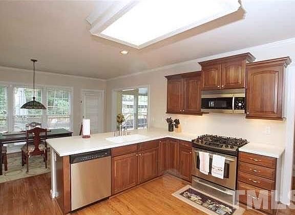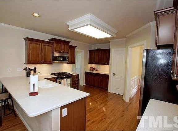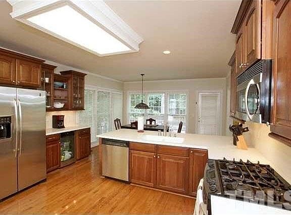 Beautiful Lochmere Home on a large .59 acres lot. Enjoy the Wooded Back Yard from the extended deck. Lots of privacy. Inside find an Open Floor Plan with Formal Areas. There is a 2 Story Family Room and lots of windows. Spacious Master and Secondary Bedrooms. Walkable to Lochmere Lake. 3 Community Pools and Tennis are available. There is Clubhouse access. Convenient to shopping, wonderful restaurants and entertainment. (New Roof, New HVAC in 6/2014. New Carpet 7/2014).Wine cooler & backsplash in kitchen.