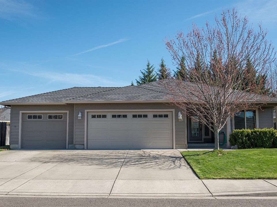 North Valley Estates, great street & great home! Looking for 3 Car Garage? Super clean 4 bedrooms, vaulted ceilings, solid wood floors in entry, hallway and dining room. New flooring in kitchen, baths, bedrooms & laundry room. Lg open kitchen that opens to dining and great room with stone gas log fireplace. Nice covered patio and 2 backyards with lg side year. Master suite with 2 walk in closets, lg shower, separate bedroom areas plus 4th bedroom off entry could be flex room, office or den.