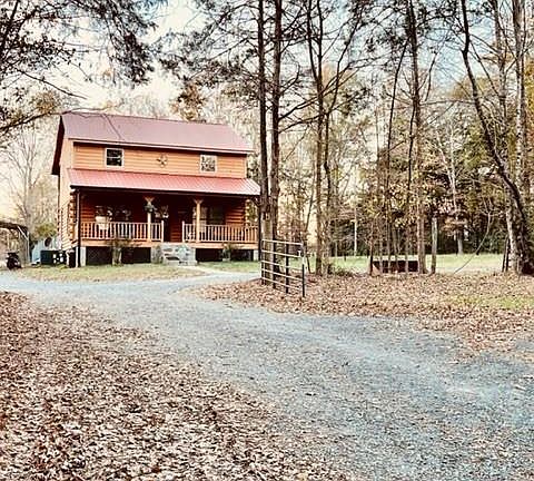 Lovely 2-story LOG CABIN in the heart of the Historic town of Franklinville! This beautiful log cabin features large wood ceiling beams, knotty pine floors upstairs, wood accent walls, open living spaces for a large family or entertaining, and THREE 30' x 8" covered porches!! Sitting on 2.3 acres with fenced backyard, circle driveway, and on a corner lot. Practically NO utility bills with 22 direct wired solar panels on roof (avg power bill $10-$20), private well and septic/no city hook ups. Spacious upstairs living that is 85% complete...make the 15% your own with remaining finishing (see agent remarks).Third room upstairs can be used as a flexspace or 3rd bedroom. Short walk or drive to local schools, library, park area, shops/restaurants, and river access. Such a charming town to raise your family!! Schedule your showing soon!!