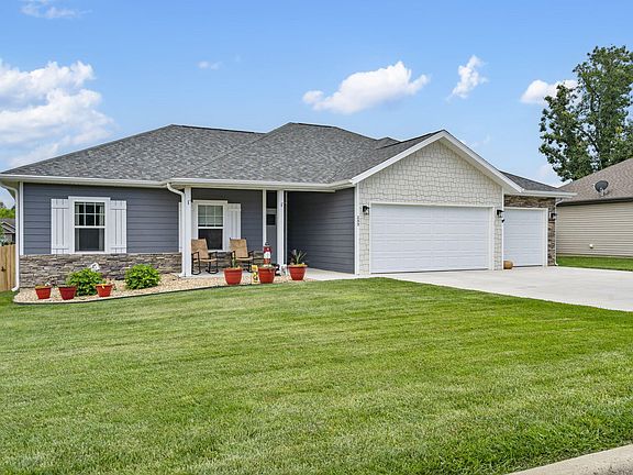 Better than new construction in the highly coveted, Three Pines Subdivision! Why better? There was no detail left untouched in this adorable craftsman style custom built home. It is completely exceptional all the way from the professionally detailed landscaping with flowering bushes and shrubs, beautiful finished exterior boasting high quality & low maintenance 'board and batten' as well as white 'cedar shake like' vinyl, and stone siding leading you through picturesque covered front porch/entry to the more custom interior finishes you will be hard pressed to find in just any newly built home. This home was done right the first time around with: warm wood luxury vinyl tile flooring through spacious main living with loads of natural light, home chef's kitchen with stunning white quartz counters, soft close custom cabinetry, black stainless appliances, pantry, both dine in bar seating and formal dining space. This all on one level split floorpan flows seamlessly with spacious owners suite with ensuite including sky high tray ceilings, walk in cultured marble shower with seat, spacious double vanity, and large walk-in closet. Across main living enjoy three more spacious guest bedrooms and/or office space (all with walk-in closets) and second full bath. Step outside on spacious back deck to unwind and enjoy the peaceful sounds of nature as the sun sets over the rolling Ozark Hills. Need extra room for the lake toys?! Home also boasts attached three car garage w/ ample storage and/or room for workshop. And the Location! Mere minutes to Table Rock Lake fishing, multiple marinas, Reeds Spring Schools, Walmart, pharmacies, hardware stores, local boutiques/eateries, and more. Also approx 20 minutes to endless shopping/entertainment in Branson. The search is over, let us be the first to welcome you to your new home in Three Pines Subdivision in the heart of the rolling Ozark Hills.