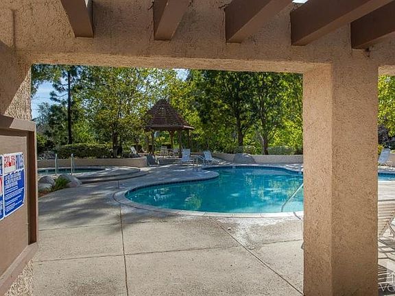 Absolutely charming 2+1 in Westlake's Hidden Canyon. Recently remodeled and in super clean condition. Upstairs unit with top of the hill location. Backs green space with lots of windows and lush surrounding hills has you feeling on top of the world. Nearly 1000 SF with a great floor plan, a one car garage, and lots of storage. Good sized kitchen with a window, breakfast bar, and refrigerator that is included. Bamboo flooring and mirrored wardrobe doors in spacious master suite really set this one off. For your convenience it has a stack-em-up laundry inside the unit with washer and dryer included. Large patio/deck is perfect for relaxing or hosting a BBQ. Additional covered parking, several pools, and a play area in this delightful Westlake Village complex.