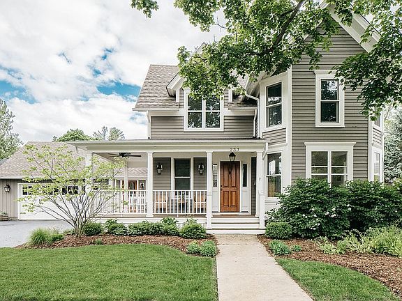 Located in the center of one of the most desirable streets in the Village of Barrington, on a 0.25 acre lot, with an attached (rare find!) oversized 2 car garage. This completely renovated and expanded home (2015) holds all the historical charm from its original 1906 build, but with all the conveniences of a newly built home. Some features of the renovation include: a generous wrap-around front porch with swing, new roof, new cedar siding, all new electric, all new plumbing (all the way out to the street), all new flooring, all new appliances, all new drywall, all new windows, all new spray foam insulation, water softener & reverse osmosis stystem, etc. An in-ceiling speaker system runs throughout the first floor and back patio. Storage is abundant, with a newly poured concrete 5' crawl under the home (accessed through exterior cellar doors), 3 attic spaces with pull-down stairs and large closets throughout. The home features custom Amish built cabinetry/built-ins, custom woodwork such as coffered ceilings, custom light fixtures, hardware, and window treatments. No detail has been overlooked, the home is TRULY move-in ready. The front has two entrances, one leading to a large mudroom, with brick herringbone flooring and shiplap walls. In the back double French doors open to a fully landscaped backyard (lots of trees!), complete with a large custom-built brick patio in 2017, pergola dining area, and separate lounge fire-pit area. The yard is fenced and has plenty of room for family and entertaining activities of all kinds. The interior is light-filled and cozy with large windows. The first floor is a seamless, open-floor-plan that is unique in the village's historic homes. The kitchen features a 13 ft. island with Ceasarstone countertops, open-shelf coffee nook, 6-burner Dacor cooktop, double oven, and farmhouse sink. There is a formal dining room as well as a spacious eat-in breakfast nook. There is also a bonus room located off the family room & kitchen that can serve as a playroom, den, or office. The second floor features airy bedrooms with vaulted ceilings, a LARGE walk-in master closet with custom closet system, and gorgeous views of the trees and neighborhood from all of the windows. The Master Bathroom has hex Carrera marble floors & a beautiful clawfoot tub. There is also 2nd floor laundry & bonus laundry closet, as well a built-in linen closet in the hallway. An original exposed brick chimney runs from the first through the second floor,- a charming feature that never goes unnoticed. Walkability doesn't get much better than this. The home is just down the block from Hough Street Elementary, walking distance to Barrington Highschool, 2 blocks from the center of downtown (main & 59), the train, and the shops on Lageshulte. Buying agents may inquire.