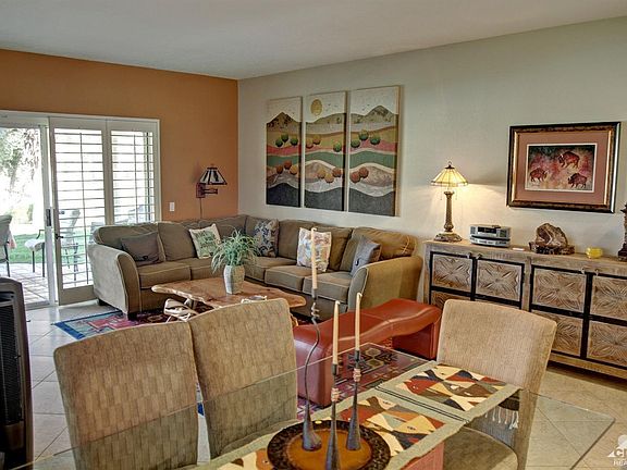 If you are looking for a 3 Bedroom lower unit that is updated beautifully and wonderfully furnished so you can move right in and enjoy all Desert Falls has to offer--This condo is for you! Close but not too close to one of Desert Falls Largest Pools with great virws from this lower units elevated location offers a large Patio with 2 ceiling fans and patio furniture. Inside Fireplace in the family room with access to the beautiful kitchen with granite counters, updated stainless appliances,Flooring , nook eating area , plenty of cabinets, window shutters and recessed lighting! All bathrooms have been redone with the finest materials that need to be seen to be appreciated! Largest Master has large organized walk-in closet soaking tub and large shower. Second master has walk in closet and large shower! Too many upgrades to mention so just come and see this Beauty!!