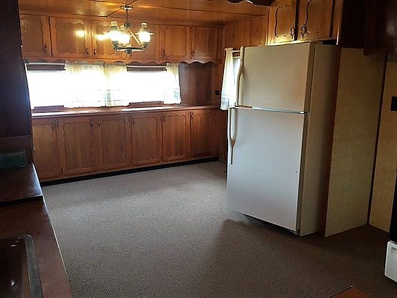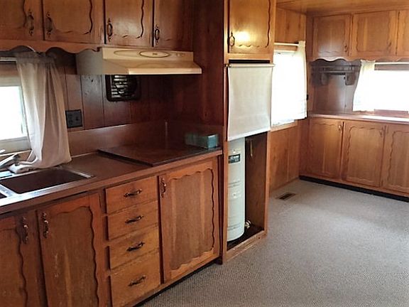 The single wide with an addition sits on a nice 200x200 foot lot 2 car garage as well as a wood shed. Home needs some work but is priced accordingly. Enclosed front porch, wood stove. Nice convenient location.