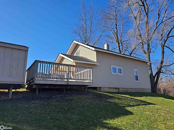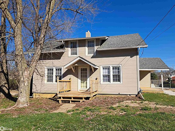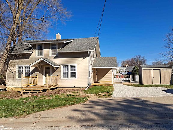 Very clean and recently painted throughout the inside. Very well-kept bungalow, roomy home with 3 bedrooms, large bath with laundry on main level, large kitchen ready for your appliances. Walking distance to square, movie theater, restaurants and your favorite shops. Windows and siding in very good shape. New carpet throughout. East side covered deck area for lounging, nice storage shed, and yard space. Basement area for ample storage.