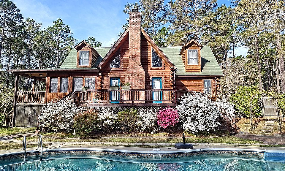 A rare find in Lexington!! Just 5 minutes to I-20. This home sits on a private 11-acre pond stocked with a variety of fish. Inside you'll find detailed craftsmanship with gorgeous hardwood floors. A spacious kitchen with all new appliances. The master is on the main with a large walk-in closet and double vanity master bath. The living area greets you with a cozy wood burning fireplace. Upstairs you'll find 2 very sizable bedrooms and a full 2nd bath. The storage is a must see! If outdoors is something you love you simply won't know where to spend your time!! You'll have the option of the screened in porch that over looks the pool and the pond, you could enjoy the enormous open porch that wraps 2 complete sides, of course there's always the welcoming in-ground pool (new liner in 2017) that has an adorable pool house and a great area to grill & entertain. Enjoy the wisteria covered bridge on the way to the new covered dock down by the pond where you'll be amazed by the sights and sounds of nature year-round, Everything from hummingbirds, ducks, blue herrings & singing tree frogs. You're sure not to miss the newly constructed 38 x 36 3 Car log sided garage. 3 separate bays with room for working or entertaining! You'll also notice a greenhouse for your flowers & a workshop for your tools! The landscaping is quite impressive with many different trees & plants. This land features land on both sides of the road to serve as a privacy protector. The options are endless!