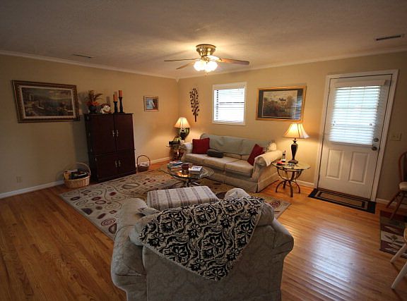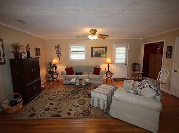 Neat as a pin, brick ranch in the heart of Algood. This 3Br home has a unique floor plan that is perfect for entertaining. Walk into a huge living room with beautiful hardwood floors! Intelligently laid out eat-in kitchen with solid oak cabinets and tile floors. Large utility room that could double as office or craft room. Three bedrooms and a spacious full bath, plus an efficient and private half bath in the master bedroom. Beautiful lot with outbuilding in quiet neighborhood. Move-in ready!! Home is eligible for 100% financing if you qualify!