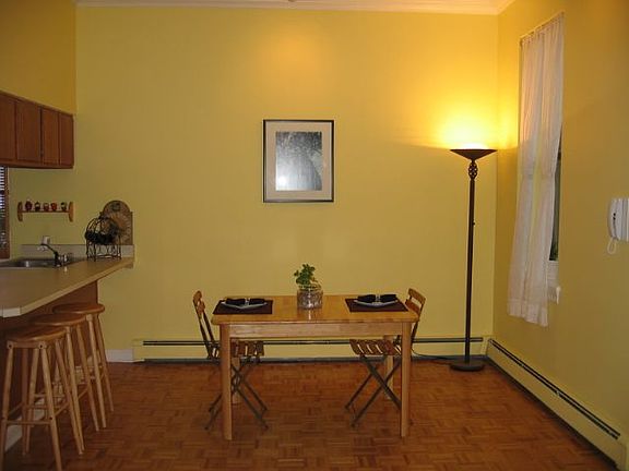VERY SHORT WALK TO PATH - CLOSE TO RESTAURANTS. A VERY UNIQUE DUPLEX W/PRIVATE ENTRANCE INTO LGE (APPROX 460 SQFT) FENCED PATIO LARGE LIVING ROOM WITH WORKING WOOD BURNING FIREPLACE, SEPERATE DINING ROOM AREA. HIGH CEILING W/TRACK LIGHT AND ARCHITECTURAL MOLDINGS, VERY PRIVATE BEDROOM LOCATED 3 STEPS UP LARGE BREAKFAST BAR. LOTS OF CLOSET SPACE. BUILT IN BOOKSHELVES EXTRA SHELVES IN THE BATHROOM! PUBLIC PARKING 1 BLOCK AWAY $150/MONTH.