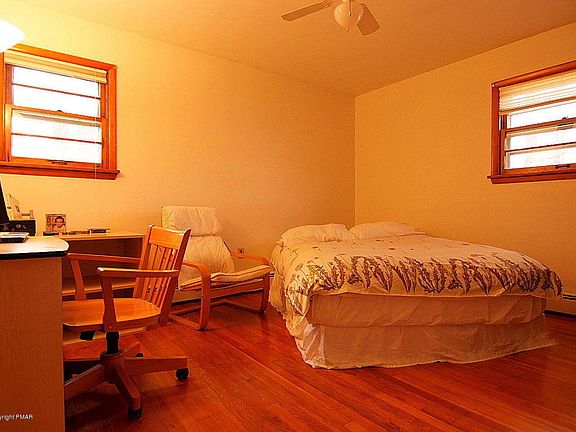 Snug and Snappy in a nice area of Mt. Pocono near everything, including Bus Service to NYC. This FRESHLY PAINTED 4 Bedroom 2 Bath charmer has Hardwood & Tiled Floors throughout with Updated Kitchen. Features 2-Zone Oil Heat with 2015 Furnace & 2 Sump Pumps, Pellet Stove, Washer, Dryer, New Water Heater 2012, New Roof in 2009, In-Law Apartment in Lower Level, Enclosed Porch, Huge Deck at back, Storage Barn, Oversized 2-Car Garage & Paved Driveway, City Water & Sewer. Good walking and biking Neighborhood. LOW TAXES of $3,312/year and NO DUES. Call to see!