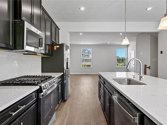 This Luxury Townhome at Burkett Manor features Easy Life-Style Living with a Pickleball Court, Community Firepit, Walking Trails, Pavillion and Grass Cutting. This open concept floorplan is perfect for entertaining with a spacious kitchen including a 9' island and stainless appliances opening into a bright and airy living room. A concrete patio allows extra space to entertain or a perfect spot to grill. Upstairs are two bedrooms with ample closet space, a hall bath, and a generous Owner’s Bedroom that features a large walk-in closet and Spa - Like Owner’s Bath with a Dual Vanity and 5' Shower w/ Seat & Ceramic Surround. You’ll also love your convenient 2nd floor laundry. Utilize the finished basement for a Home Gym, Office or additional space to hang. Burkett Manor has walkability to restaurants, shopping and conveniences. Interior photos are of model home and not actual unit
