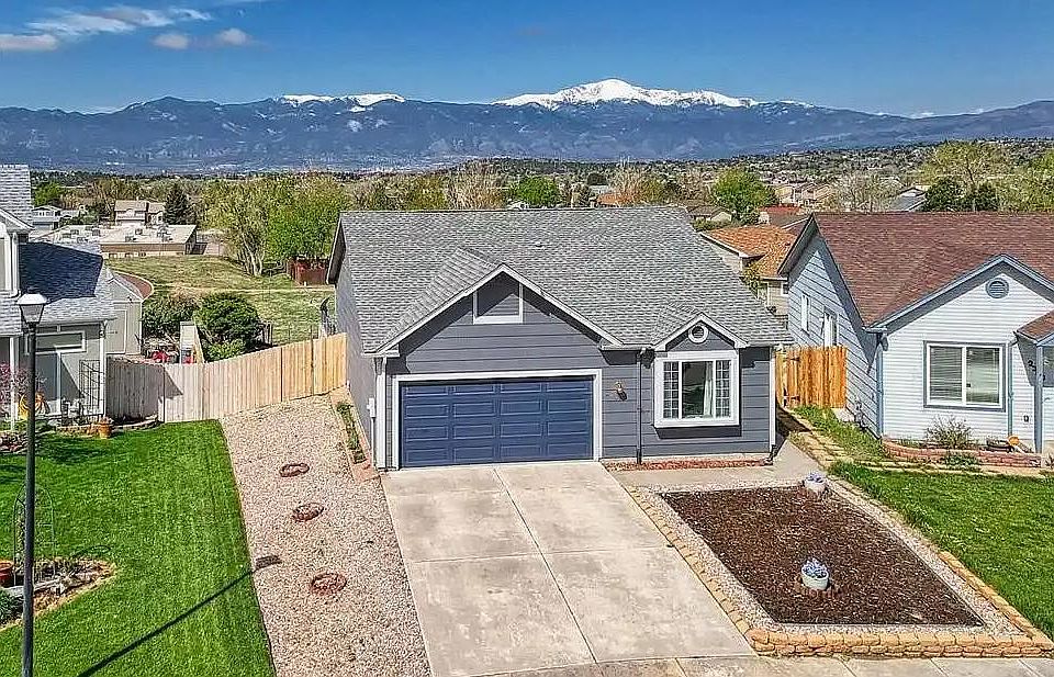 Charming ranch style home with a spectacular unobstructed view of Pikes Peak! This house is conveniently located adjacent to Horizon Middle School and close to the Powers Corridor, allowing for an easy commute to anywhere in Colorado Springs, including Peterson SFB and Schriever SFB. Rental includes in-unit laundry. Master bedroom has large attached bathroom and oversized closet. Second and third bedrooms share full bathroom. Attached 2-car garage fits two SUVs. Application through Zillow. Renter responsible for all utilities. Security deposit of one month rent. No smoking of any kind. Pets allowed for additional fee. Move in date April 20-May 1.