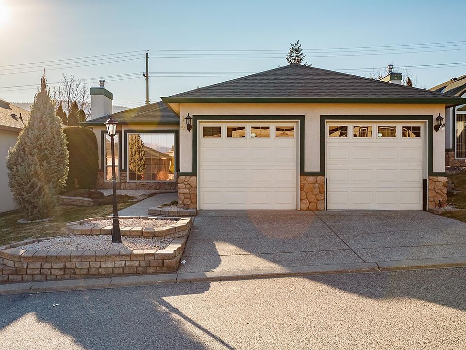 Best valued 2 bed and den rancher at the sought-after Sun Village gated community! Sold by the original owners and the lease has been PAID, it's also vacant and ready for immediate possession! This unit has a double-wide driveway allowing extra parking. From new the owners had the developer finish the left bay of the garage to be additional sq footage as they only had one vehicle so it's currently a great rec area that can be used for arts and crafts, guests, billiards, or whatever your imagination desires! If you wanted to turn it back into a double garage, it's very easy to do so. Sun Village is within walking distance of all your shopping needs in Westbank and also public transport. It's a pet-friendly complex allowing two dogs! It even offers amazing amenities like a clubhouse and indoor pool, exercise room, sauna, and RV parking. This property has been sale-priced and will not last.