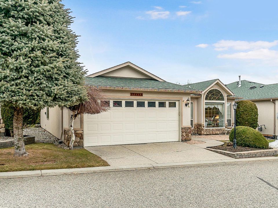 Welcome home to Sun Village. This 45+ community is the ultimate retirement community offering the perfect resort style living. This rancher home situated in the gated flat community with a clubhouse, amenities and activities offers easy living to enjoy the beautiful Okanagan days. Open concept kitchen and living room backs onto the covered patio overlooking the beautiful Waterscapes. This immaculate home offers a Large formal dining room with Bay windows, oversized Master bedroom with a 4 piece bright and light ensuite, large second bedroom with built in Murphy bed, and an oversized extended garage with built in cabinetry. All measurements approximate, very if important.