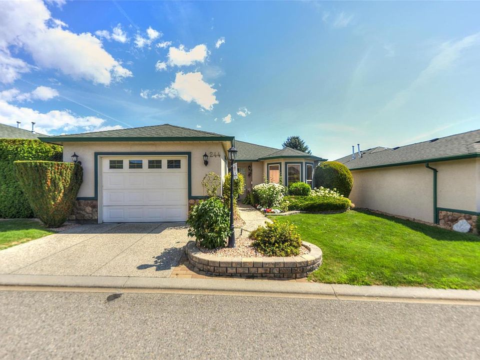 Sun Village This 1256 sq ft rancher in a tranquil creek side setting was remodeled 6 years ago. A very quiet unit that has a high-quality hardwood floors, quartz countertops, fresh paint and revitalized cabinets, tiled patio with remote controlled awning. Furnace and A/c replaced in 2019. Sun Village is known as one of the most desirable places to live in all of West Kelowna. There is a clubhouse with many amenities including a saltwater pool, hot tub and exercise room. This home is close to restaurants, shopping, recreation, and all of the great things that West Kelowna has to offer. If you need them, there are RV parking spaces available .Pets are welcome at Sun Village! Max. 2 dogs 20" to the shoulder. HOA fees $280.07 land Lease $227.50
