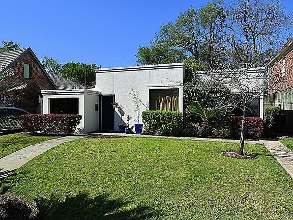 This Art Deco gem was designed by famous Houston architect Bailey Swenson and was featured in the Houston architectural guide as a historic home. Walking distance from both Rice Village and the medical center. Updated, remodeled kitchen and bath, great hardwood floors, floor to ceiling windows with natural light! Open floor plan with efficient use of space and lots of storage. Master bath with double sinks and walk in shower. Lovely patio and backyard with a gorgeous landscape.