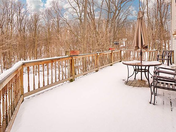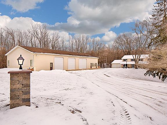 Not your cookie cutter Home settled on 5.5 acres! Updates throughout! Active ADT Alarm System both on home and outbuilding! Upon property entrance, the outbuilding is elaborate with oversized service doors, 14ft ceiling space, concrete floors, plumbing and a half bath; not to mention the finished rec/office area, which is heated. The 4 Bed/4.5 bath Home is nestled further in, backing up to the woods featuring a circle drive. The open layout provides unique character throughout including elevated ceilings on all three levels. The partially wooded property with stocked pond delivers a wonderfully enchanting setting for this beautifully presented home. Equipped with corian countertops, the kitchen and breakfast area open to the deck offering wooded scenic views. Ensuite master with two walk-in closets , and double vanity on main level. On the upper level, you will find another ensuite bedroom with a spacious walk-in closet. All bedrooms are extraordinary in size. The finished basement has a piece of downtown Chicago in regards to the ceiling tiles giving the lower level a fantastic look along with a woodburning fireplace to give a cozy feel. It is open yet has well defined areas including a wet bar and full bath as well as two walk out areas to enjoy nature's views. Pictures do not do this property justice, schedule your own personal tour today!