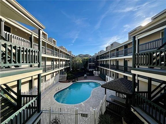 PRIME LOCATION! This recently updated third-floor condo is conveniently located just off of Causeway Blvd. and the S. I-10 Service Road, providing quick and easy access to downtown New Orleans, shopping malls, restaurants, hospitals, etc. It features high ceilings in the living room and bedroom, a skylight in the living room, a private balcony off of the bedroom, new countertops, new flooring, a 1 year old AC unit, in-unit washer/dryer, a large walk-in closet, a private storage closet, gate-code access, and off-street parking for up to two vehicles. Enjoy the community’s well-appointed amenities including a beautifully landscaped courtyard, an inground pool with a deck, and covered seating area made for relaxing or entertaining. The condo fee is only $300 a month and includes water, sewer and trash pick up, exterior insurances, maintenance of roof, building, common grounds, and pool. The complex is pet-friendly (one animal under 20 lbs.). VA loan approved; not FHA approved. Seller may consider Bond for Deed. Don't miss out on this amazing opportunity in great location!