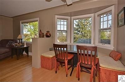 Darling Congdon bungalow on an over-sized corner lot. This home features gleaming hardwood floors on the main floor. The living room has a wood burning fireplace and bow window. The dining room has a custom built nook and built-in china storage. The updated kitchen has granite counter tops, stainless under mount sink and stainless appliances. There is a main floor bedroom and updated full bath. Upstairs are two bedrooms, and an updated 1/2 bath. The finished lower level has a walkout family room, neat and tidy laundry room, updated 3/4 bath and tons of storage. Relax and enjoy the new maintenance-free deck and nice yard. Other features to love: newer roof, 2 var garage (can be heated) new hot water heater, newer furnace and lake "peek" from many rooms.