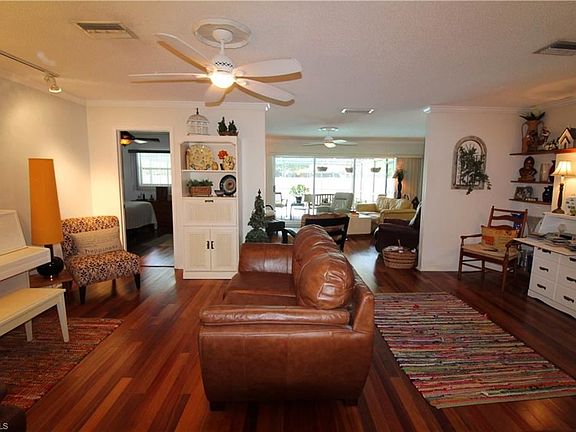 Beautiful pool home located in Ft Myers Villas - close to everything you need! Southern exposure home with an open floor plan where the Living Room transitions into the Family Room and there's a Breakfast Room off of the Kitchen (stainless steel appliances). En suite Master Bedroom with private commode/shower. Nice sized Guest Bedrooms and Guest Bath with spacious linen closet. Gorgeous, rich hardwood floors throughout the main living areas and bedrooms; tile in Kitchen, baths, and hallway; plus crown molding. The Family Room opens to the screened, pavered Lanai through a wall of telescoping sliders - tinted to keep out the glare. Oversized yard with a storage shed and vinyl privacy fencing along the east and south sides of the yard. Updates include a new A/C 2019, newer water heater and pool pump. The home is also powered for a generator. Close to restaurants, schools, medical, shopping. About 20 minutes to RSW Intl. Airport and to beaches.