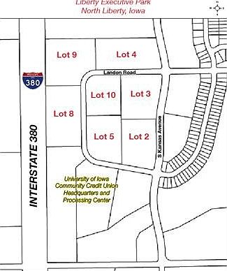SHOVEL READY LOTS AVAILABLE IN LIBERTY EXECUTIVE PARK, NORTH LIBERTY. HIGH VISIBILITY FROM I-380. TIF INCENTIVES AVAILABLE FROM THE CITY OF NORTH LIBERTY. THE NEW UNIVERSITY OF IOWA COMMUNITY CREDIT UNION CORPORATE HEADQUARTERS AND PROCESSING CENTER ARE LOCATED ADJACENT TO THE AVAILABLE LOTS AT THIS SITE.