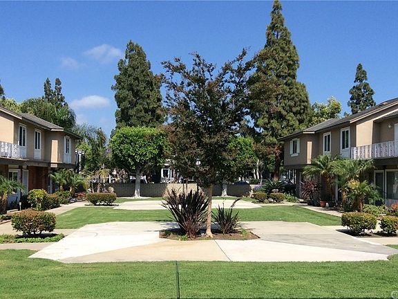 Inside tract location; largest 4 bedroom floorplan. This Monticello end unit townhome has a cozy beach cottage atmosphere, complete with dutch door that opens from the kitchen to private patio. Patio is perfect for morning coffee breaks or afternoon snacks. Kitchen has been redone with cottage white, custom cabinets. Downstairs fourth bedroom/den with custom built in book case, and sliding door to patio. Downstairs 3/4 bathroom. Spacious Living Room overlooks the friendly, expansive, green belt. Crown molding, and cottage white shutters accent Living room and Dining area. Dining area includes custom cabinet, perfect for displaying heirlooms and treasures. Upstairs large master bedroom is airy and bright with cottage white shutters and extra roomy with mirrored wardrobe closet. Bedrooms upstairs are spacious; front bedroom is extra large and over looks the courtyard/green belt. Direct access to 2 car garage and laundry closet from patio. New carpet and paint throughout provide a sophisticated, tranquil environment that makes this place feel like home. HOA include pool, spa, clubhouse and lush green belts. Located near OC Fairgrounds, Vanguard University, South Coast Plaza and some of the best beaches SoCal has to offer. This is a PUD, attached Single Family Home, not a condo. VA/FHA approved. Also, Bank of America has a special program for Monticello purchases. Up to $10.000 for down payment credit and $7,500 for closing costs. Wow!!!!!