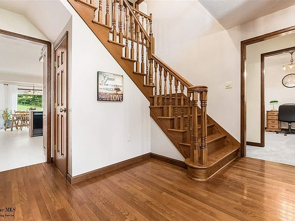 5BD/3.5BA, 3840 SF, 1st flr owner suite & office, loft on 2nd level. Mudroom/lndry rm w/storage closets, utility sink & BA. Relax on your back deck & enjoy the 10.21 AC w/a meandering creek, field, woods & wildlife w/garden area fenced to keep wildlife out of crops! 3 outbuildings. 2 are 12x2 w/adj lean-tos & 3rd is 30x40 pole barn. Updates: Win & French Drs (2016), Whole house gen (2017), Roof (2018), Furn & AC (2018), Stove, Dishwasher, 3 gar drs (2019) & Carpet (2020).