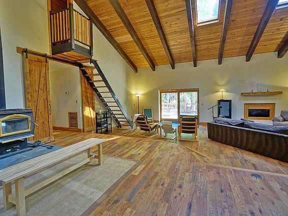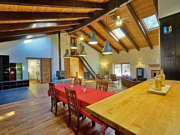 This wonderful custom finished home on a large mostly level lot in the woods has so much to offer. This 3000 sq ft 4 bdrm plus office home has been beautifully updated with hardwood floors & custom kitchen including marble counters & 2 sinks. The soaring open ceilings w/ wood beams make the home feel extra spacious. The 1600 sq ft garage w/ workshop can accommodate many cars and projects. There is an outbuilding that needs finishing touches maybe a guest cottage? Come see this lovely property!
