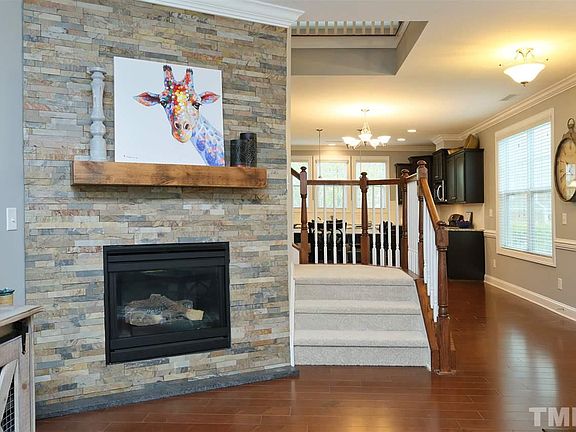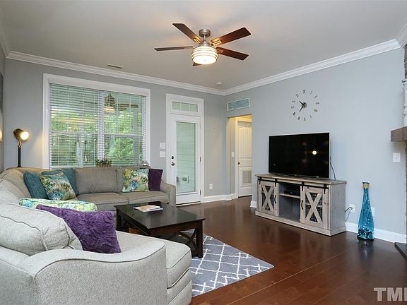 Updated w/ HGTV inspired features include bead board in half bath, board and batten in master & stone fireplace w/ new mantle. New carpet, neutral paint throughout, master closet organizer, hardwood flooring, granite counter tops, ceiling fans, SS appliances. First floor master. Large screened in porch overlooking private wooded natural area. Conveniently located in growing Western Cary. Just a short distance to Horton's Creek Elem (trad calendar), Panther's Creek HS & Parkside Commons