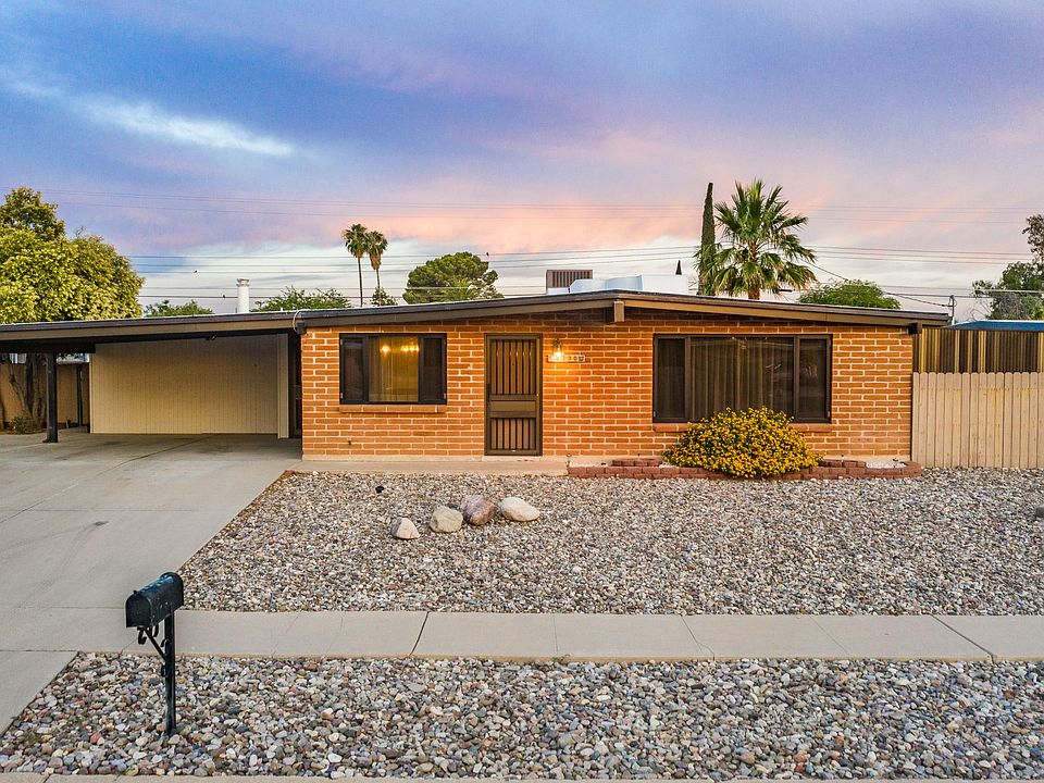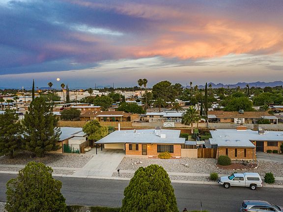 Priced below Zestimate! Mid Century Modern 1,980 Sq Ft 4 bed/2 full bath + workshop, burnt adobe ranch home on premium .18-acre lot in desirable East Tucson. Pride of ownership shines with the same owners since 1972! Featuring: E/W orientation, no HOA, RV parking, single story, no stairs/steps, updated energy efficient double pane windows throughout, modern knotty wood internal doors, upgraded 200 amp electrical panel, custom aluminum fascia board covers & windows, long concrete driveway, double carport, wood burning fireplace in family room, skylights, exposed interior burnt adobe, large picture window in living room provides fantastic natural light, ceiling fans, internal laundry room with storage & dryer, HVAC 5 years old, spacious living room plus family room and eat in kitchen CON'T Open concept kitchen, original genuine wood cabinets & hardware, kitchen bar, giant walk-in pantry & more storage, double sink, dishwasher, electric stove and stainless-steel fridge. Enjoy tranquil Tucson sunsets in your private low maintenance backyard with mountain views, access gate, irrigation drip system and workshop. This property qualifies for Arizona Department of Housing Pathway to Purchase Down Payment Assistance Program, up to 10% of purchase price if buyers qualify (talk with your lender). Listed at just $95.91 per Sq Ft, fantastic opportunity for 1st time home buyers, seasonal visitors, anyone searching for affordable housing and/or investors alike. Come view this Mid Century Modern home for yourself today.