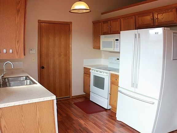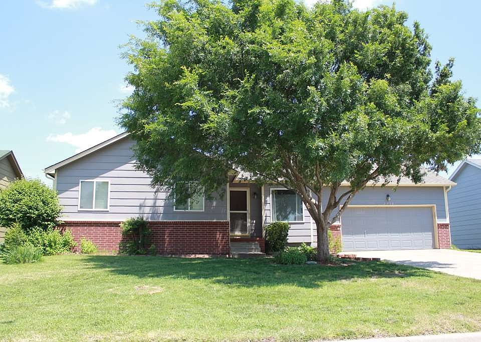 Wonderful 4 bedroom 3 bath 2 car home located in the much desired Goddard School district! This home has all that you're looking for! Living room has a vaulted ceiling, lots of natural light, wood laminate floors and wood burning fireplace with a gas starter. Dining room and kitchen also have vaulted ceilings and wood laminate floors. Kitchen is equipped with range/oven, microwave, dishwasher and disposal. 2 car garage walks right into your kitchen so bringing groceries home is a breeze! Kitchen has plant shelves and space above cabinets to decorate to add your own personal touch. Master bedroom is spacious, has half vault ceiling, wood laminate floors, private bath and walk in closet. Master bath has tub/shower combo, tile floor and window to let in natural light. There are 3 bedrooms on the main floor and a guest bath with full tub/shower combo and tile floors. 4th bedroom is in the basement and has a view out window and wood laminate floors. Family room is spacious, has view out window with a lot of room to entertain. 3rd bathroom in the basement has tub/shower combo, tile floors and linen cabinet and storage shelves. Storage room is huge with built in shelves and clothing rods to hang off season clothes. Laundry is in the basement. Slider doors in dining room open to deck, that has just been sanded and stained. Back yard has plenty of "running space", partially privacy fenced and includes the play set. Patio area is just right to add an outdoor table and chair set to enjoy peaceful summer evenings. Plenty of storage space underneath the deck. Roof was replaced a few years ago. Sellers have purchased a 1 year home warranty for you!