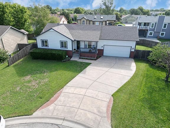 Have you been looking for a move-in ready home on a cul-de-sac lot, within easy distance to lots of amenities and within the Goddard School District? There are so many great things packed into this spacious home. Recent updates include an updated exterior paint job, interior paint throughout most of the home, new flooring on the main floor, water heater (2024), roof (2019), HVAC (2017), and radon system (2017). Situated on a quiet cul-de-sac without through traffic, the location provides quick access to both Maize Road and Kellogg. Do not miss out on this gem! Pulling up to the property, you'll see the attached two car garage and front flower beds that contain irises and lilies. The front entrance leads directly into the living area with a vaulted ceiling and nice open windows. Off the living area is the kitchen and dining combo with sliding doors that lead to a back deck perfect for relaxing in the evenings or easy access to a grill. Garage refrigerator, oven, and dishwasher transfer with the sale of the home. Upstairs is a large master bedroom with a vaulted ceiling, a walk in closet, and an en suite that has a shower/tub combo. The main level also has a second and third bedroom and full bathroom. Down the stairs, the basement has a large family room with view out windows that provide good light. The fourth bedroom is located off a hallway that leads to the third bathroom. Also downstairs is the mechanical room with lots of storage space and a separate laundry room with even more storage availability. Yard is fully fenced, and has a shed nestled to the north side of the property. Located in the desirable Goddard School District, this home has lots to offer, including no builder specials or HOA.