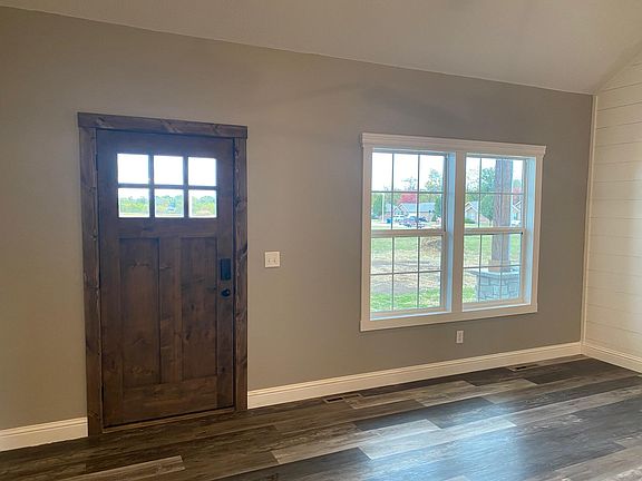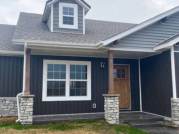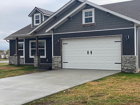 DETAIL AND DESIGN BEST DESCRIBE THIS NEW CRAFTSMAN STYLE HOME!!! From the moment you drive up the wow factor is apparent. The exterior offers the perfect mix of dark vertical siding, lighter shake siding and wood accents for that craftsman style look. You will enter the home from the stamped concrete covered front porch and directly walk into this amazingly well thought out home. The builder is meticulous when it comes to design and making every space have a purpose. Home offers an open living room, dining area and kitchen. Vaulted ceiling, wood beams and a shiplap accent wall make for a grand look. The dining area is located between the livingroom and kitchen with plenty off space for large dining table. The kitchen is unique and offers grey kitchen cabinetry, wood sit down island, granite counter tops, tile backsplash, wood accent shelving, stainless appliances and a barn door walk-in pantry. Master bedroom has a step up ceiling tray with wood rustic accent. Master bath offers double sinks, granite counter tops, beautiful tiled walk-in shower and the entry to walk-in closet. Add 2 more bedrooms and a bath that also has a granite counter top and wood shelving. Vinyl plank flooring makes for easy cleaning plus adds a warmth of color and beauty to each and every room. Large laundry room with sink and counter. Outside you will find a covered patio with stamped concrete and wood rustic posts. This is a must see to appreciate the upgrades and beauty of this home!!!!
