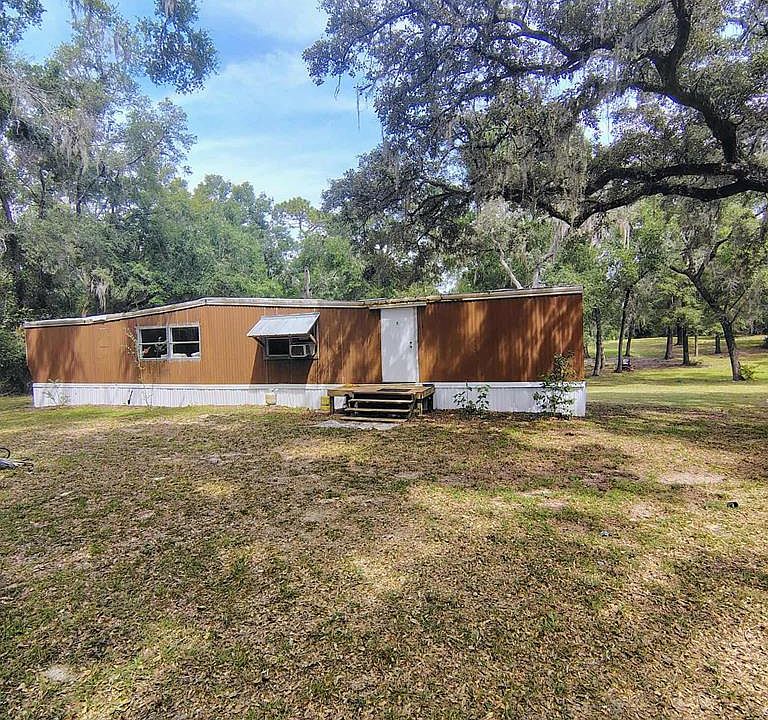 This 1972 single-wide mobile home features 2 bedrooms and 1 bathroom, nestled on 5 fully fenced acres. It's perfect as a starter home or as a foundation to build your dream home on this stunning property. The land is abundant with wildlife like deer and turkey and boasts a screened-in back porch where you can relax and watch them feed from the feeder or take in the serene view of the pond. This property radiates tranquility and natural beauty. The property is located near Waters Lake in Gilchrist County. Gilchrist County is known for its friendly, small-town atmosphere, natural springs, and lush woodlands. Outdoor enthusiasts will appreciate the many opportunities for fishing, kayaking, hiking, and wildlife observation. With excellent schools and a welcoming community, Gilchrist County offers the perfect blend of rural charm and modern convenience. This property is located 30 minutes from Gainesville for hospitals, specialties, and the Oaks Mall.