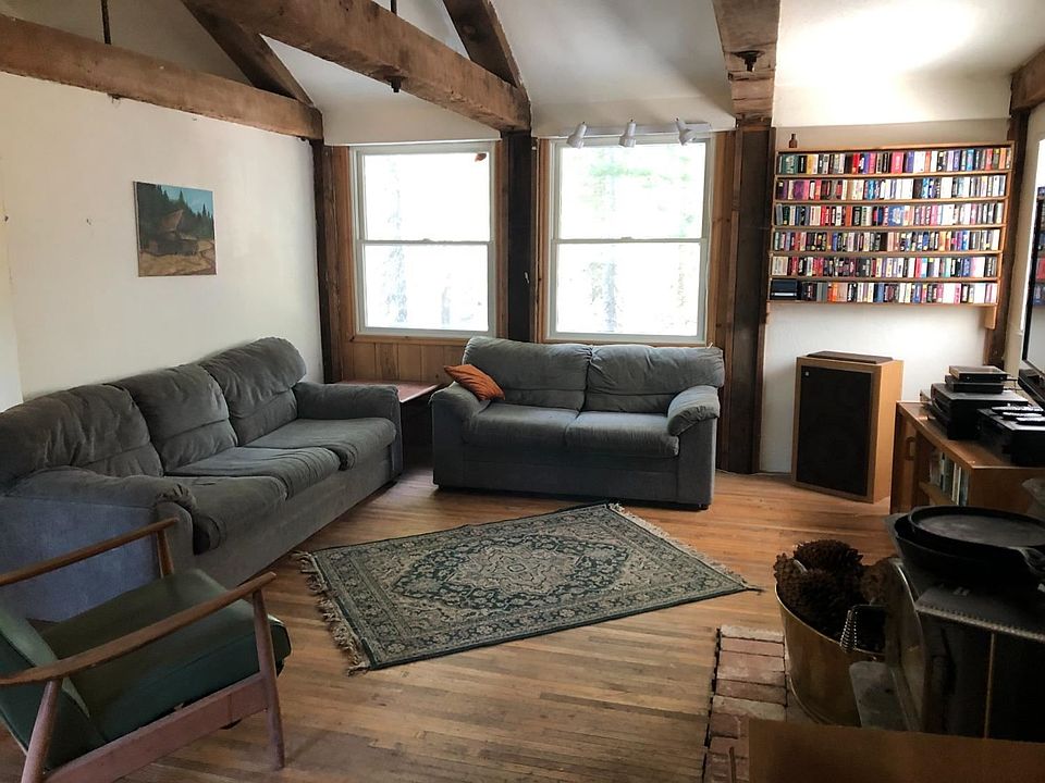 Cute two bedroom cabin, with a tiny house on an adjacent lot. Both are included in the sale price. Live in one, rent the other, or have a family vacation with separate living areas. Wood stove is connected to duct work and fan that moves heat to the back bedroom; convenient kitchen with eating nook and breakfast bar; Pull down ladder provides access to attic storage; Full basement has partial bath, washer and dryer, workbench, and lots of storage space for winter and summer toys. The tiny house on the adjacent lot is included in the sale and was built in 1998. It features a kitchen wall, full bath, and bedroom loft. Picture lots of family fun with a nearby lake, hiking, fishing, and relaxing in the wonderful mountain air. Peaceful living at it's best.