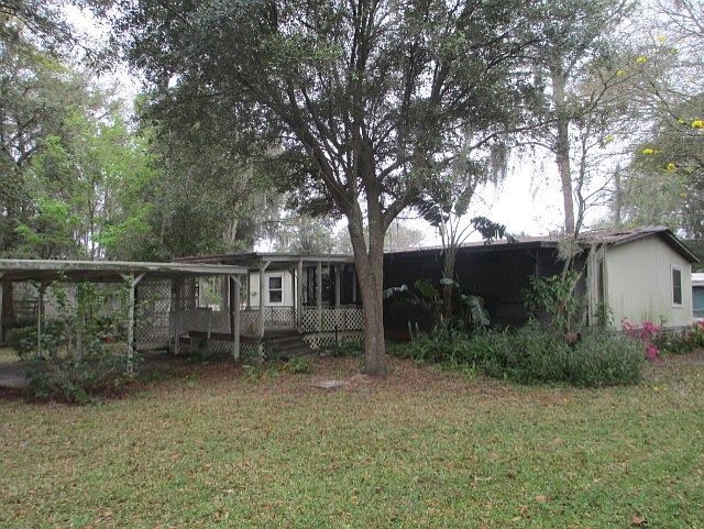 Large lot with old hardwoods and tropical trees - located in a nice quiet neighborhood. Home has a large screened in porch and there are several storage sheds on the property. Doublewide with 4 BR, 2 BA, just over 1500 square feet of living area with a good electrical panel, large central HVAC, water heater and refrigerator. The home will require rehab and repairs, but is a great investment for a motivated buyer.
