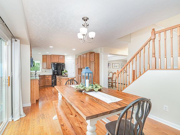 The heart of the home is the spacious 2-Story family room, boasting a large windows, ceiling fan, and a cozy gas fireplace—ideal for relaxing evenings. The family room seamlessly connects to the kitchen and breakfast area, making it perfect for entertaining. The breakfast room features a walkout to a large deck, perfect for outdoor dining and gatherings.
