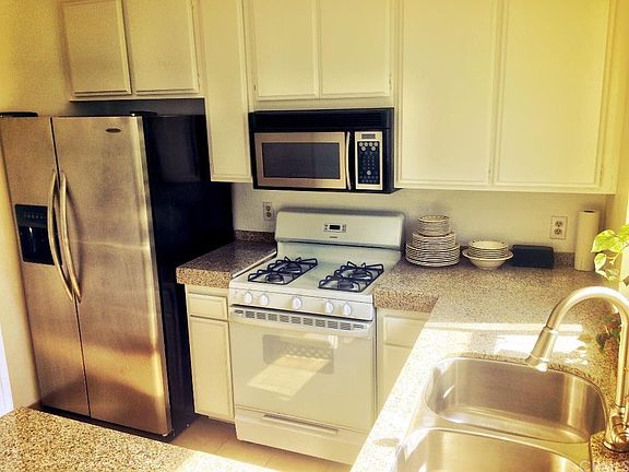 Enjoy cool coastal breezes that flow through the open floor plan of this beautiful and spacious Newport Landing townhome. The home has 3 bedrooms with large closets. The upgraded kitchen with granite countertops opens to the living room, which spills out onto the entertainer sized balcony with views of the pool, spa, and tree-lined pathways of the community. Additional features include: an expansive master bedroom, interior laundry, vaulted ceilings, ample natural lighting through multiple windows, wood flooring, excess of guest parking, and two single-car detached garages. Washer, dryer, and refrigerator included in lease. BRAND NEW CARPETS AND WASHING MACHINE! Conveniently located in close proximity to beaches, local colleges, restaurants, shopping, and major Orange County freeways.