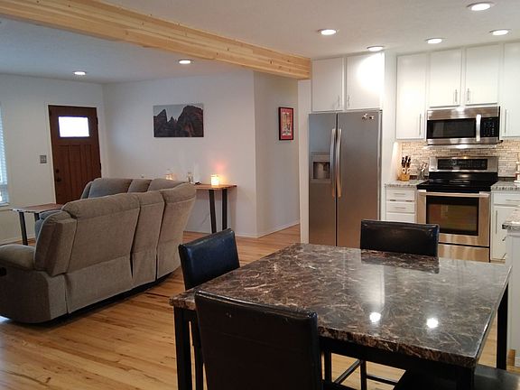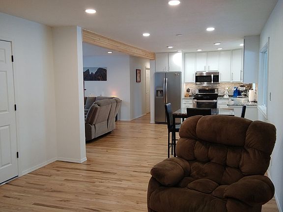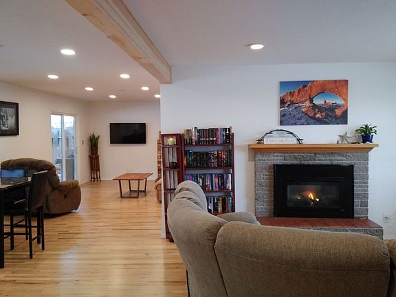 This cozy mid-centry rancher boasts quality updates throughout. The beautiful hard wood flooring will definitely catch your eye. The custom kitchen cabinets with granite countertops and under cabinet lighting makes this open kitchen a breeze. Other updates include, electrical, bathrooms, led lighting, vinyl windows, and HVAC system. There's a gas and a wood fireplace. The oversized double car garage is fully insulated, heated and finished, adding to the square footage.