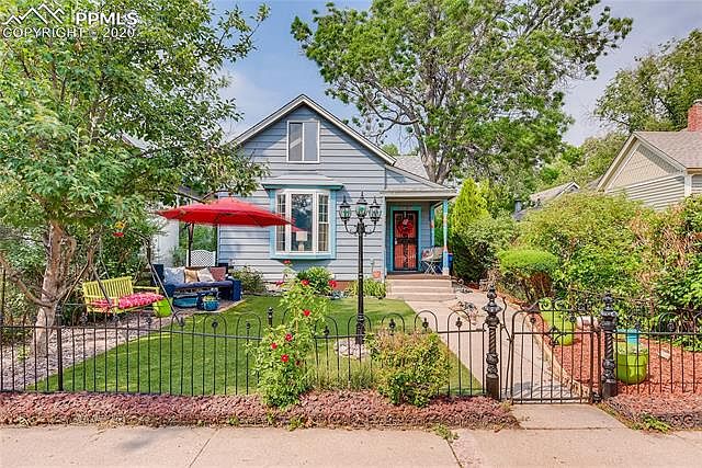 A wonderful Victorian-style home in the heart of Old Colorado City. This gem is a 1.5 story, three bed, one bath home with hardwood floors throughout. The living room features a bay window and gas free-standing stove. The large dining room has plenty of light and built-in cabinets with room for any size dining set. The kitchen has a gas stove and walk in pantry. Two bedrooms, bathroom which features a claw foot tub, and laundry room are also on the main level. Upstairs is a third bedroom and loft area. Parking in rear with privacy fence and plenty of room for animals and entertainment.