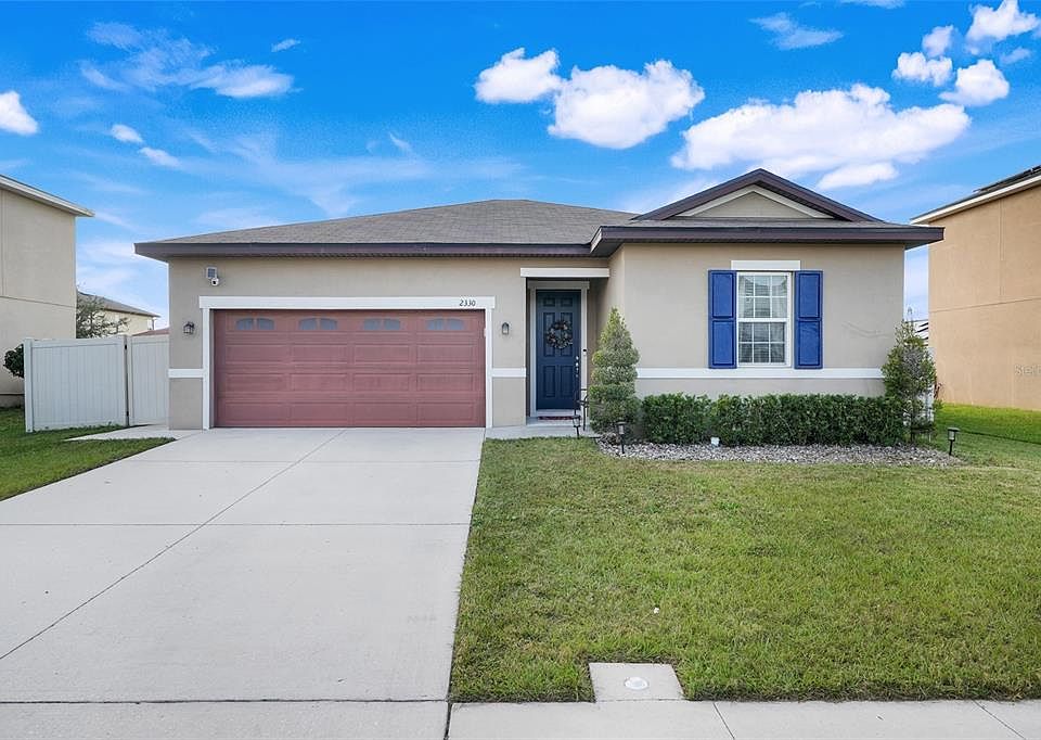 Welcome to 2330 Wadeview Loop in Saint Cloud! Built in 2019 and beautifully maintained, this 3-bedroom, 2-bath home combines contemporary style with everyday comfort, offering a bright, open layout designed for effortless living and entertaining. Step inside to discover 9-foot ceilings, leading into a spacious main living area with abundant natural light and a seamless flow between the kitchen, dining, and family space. The well-appointed kitchen offers modern finishes, ample cabinetry, and a welcoming atmosphere perfect for gatherings. The house is also protected by a fire sprinkler system installed. Outside, the fully fenced-in backyard delivers privacy and space — ideal for pets, outdoor dining, or creating your own garden oasis. Located in the highly desirable St. Cloud area, this home places you just minutes from the charm of historic downtown, where you’ll find boutique shops, local restaurants, cozy cafés, and community events. Enjoy easy access to popular dining destinations, family-friendly parks, and the stunning shores of East Lake Tohopekaliga, offering fishing piers, walking paths, playgrounds, and waterfront relaxation. With its combination of modern construction, an inviting fenced yard, and a location that blends peaceful living with close-by conveniences, this move-in-ready home is an opportunity you won’t want to miss.