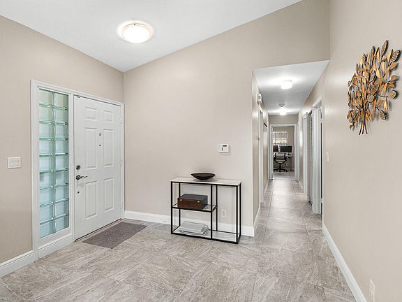 Welcome to your serene oasis by the lake, where timeless elegance meets modern comfort. This meticulously updated 4-bedroom, 2.5-bath home offers the perfect blend of space and style, thoughtfully designed split floor plan. Home has a modern design, featuring an updated kitchen complete with Quartz countertops, fine wood cabinets, ss appliances. Porcelain tile floors lend a touch of sophistication to the living spaces, creating an inviting atmosphere. Master Bedroom features new porcelain floors, walk in closet. This home has been thoughtfully maintained with a newer AC unit (2016), water heater(2022).Furniture is optional. Nestled in a gated community, with a community Pool. Boca Pointe is none mandatory membership, with option to join the Social, Golf, Tennis. Call for info and showings The HOA maintenance fee covers a comprehensive range of services, from community pool access to upgraded cable, exterior painting, pressure cleaning, lawn service, fertilization, pest control, and tree trimming, simplifying your day-to-day living.