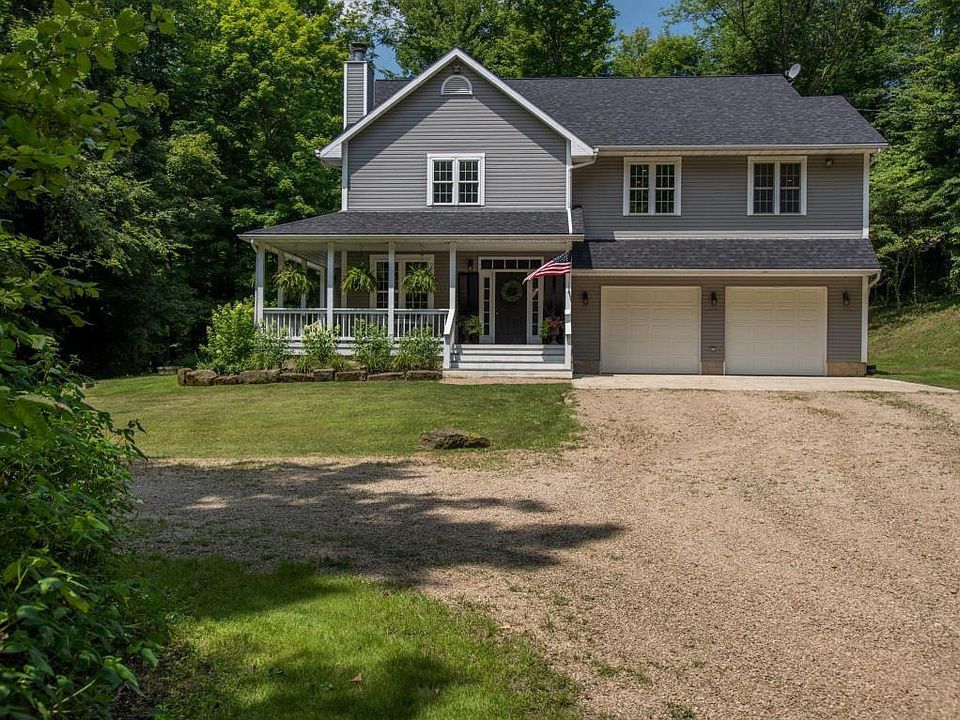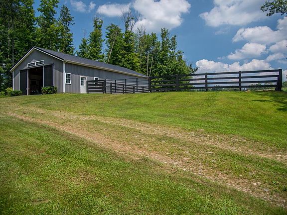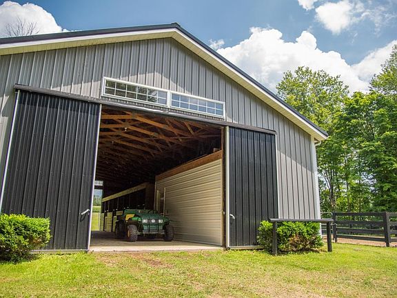 Escape to the country to this exceptional horse farm, located an hour from Columbus, near Apple Valley Lake. Offering a custom built 2 story traditional style home on 16 acres. Built in 2005 w/ quality finishes. Welcoming wrap-around front porch, 2 story great room w/ wood burning fire place, kitchen w/ custom cherry cabinets, 1st floor master suite, 2nd flr family room w/ bar. You will love the newly renovated master bath, 18' wide plank hardwood floors, 9' ceiling heights, large windows & bright rooms. The farm includes all new 8 stall horse barn, wash rack, tack room, inside shavings storage, ground floor hay storage, 60x120 outdoor riding arena, pasture w/ ElectroBraid fence. Additionally there is a chicken coop and goat pen. Peaceful nature w/ woods and trails.