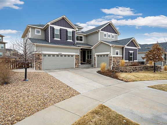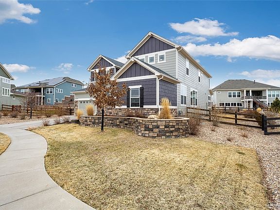 Searching for just the right home This elegant and inviting cul-de-sac home is sure to please! Soak in the phenomenal location across from green space and trails and the appeal of the terraced front yard and cozy front porch. Welcome into the custom vaulted entry with curved staircase and stone accents. Imagine curling up in the vaulted and sunny family room in front of the fireplace - there's even a motorized blind for the 2-story window. Imagine entertaining in the gourmet kitchen with a granite island that sets 4 comfortably and a breakfast nook overlooking the beautiful back yard. This amazing kitchen features ample counter space and cabinetry, and corner pantry as well as KitchenAid appliances, including a double oven, gas cook-top and microwave. The coffee bar/butler's pantry flows into the formal dining room. Continue down the hall to the double-door home office with easy access to the single-bay garage. There's even a main level bedroom and 3/4 bath with oversized shower fantastic for guest space or easy living. Upstairs, the good-sized loft offers additional space to relax. You will be delighted by the generous sizes of the second- and third-bedroom upstairs rooms and the main bedroom is truly a work of art! The master suite is a sanctuary featuring an expansive bedroom with tray ceiling and mountain views. The 5-piece master bath with oversized shower and soaking tub is a perfect escape just wait until you explore the walk-in closet with custom organizers and convenience door directly to the laundry room! It is rare to find such a well-designed with such timeless appeal and quality finishes. Large lot and the full basement w/ plumbing rough-ins is easy to finish. Even a newer roof, exterior paint, interior paint, and carpet just move in and live your best life! Inspiration boasts a serene and secluded location that is convenient to both Parker and Aurora and provides miles of trails, lots of play space/parks and a pool to enjoy Welcome Home!