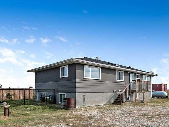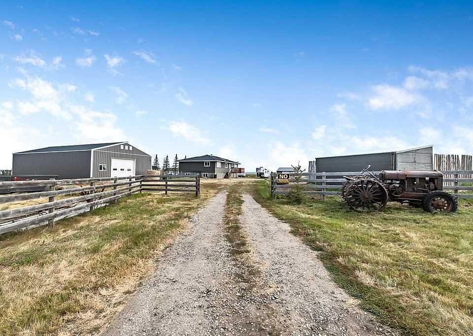 This TERRIFIC 7 acre property only 10 minutes South of Strathmore, has everything for your country living enjoyment!! A fully renovated and fully developed 1206ft2 bungalow, newer 30'x60' fully finished heated and insulated workshop, a new 5 box stall barn 36'36', and outdoor riding arena and pasture and turnout pens for the horses!! This 4 bedroom 3 bath home has been upgraded and modernized substantially including a new kitchen,new flooring,paint,fixtures,bathrooms and utilities and offers a fully developed lower level with 9" ceilings and a large game/recreation room!! Located on a very quiet dead end road yet close to town for convenience. If you're a horse person,a mechanic or are hoping to be and want your own piece of property to enjoy the country living lifestyle then come have a look at this property today.