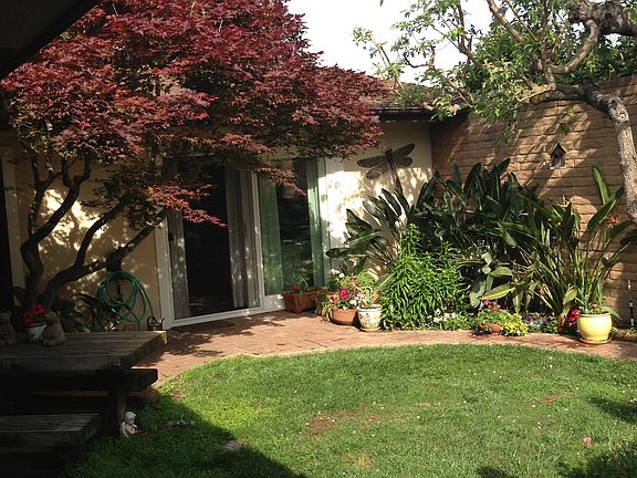 Comfortable, warm, unique home. Front door enters you into a beautiful courtyard setting with walls of glass inviting you into several rooms of the home. Newly installed solid hickory wood flooring in living room, dining room and hallway. Updated carpeting in all bedrooms, one of which is being used as a den/office. All new dual pane windows and completely remodeled kitchen. Isolated swimming pool and patio area in the backyard. Over-sized two-car garage with alley access. Must see inside to experience the true value of home.