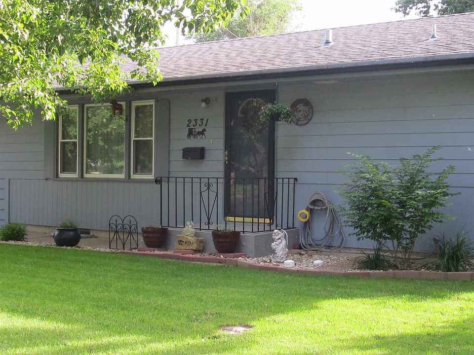 Immaculate home -- inside and out -- upstairs and downstairs. This home has been exceptionally maintained. In 2014 the Manhattan City Rehab Program installed all the following new: -- sewer from house to street; clean-outs in front yard; all water lines; hot water heater; furnace and AC; electrical panel; basement stair railing; radon mitigation system; smoke alarms; All new windows and one key lock system. Three bedroom upstairs -- the third bedroom currently has the washer and dryer as convenience for the homeowner. It can easily be moved to the basement a hookups are still in place. Carpet in living room BUT hardwood floors throughout. Sump pump in the basement. Single car garage is oversized -- 24 X 16 -- with a workbench in the front; Gutter guards. The backyard is mostly fenced but not owned by seller with an 18X16 covered patio and nice storage shed. Established, well-kept neighborhood.