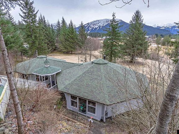 One-of-a-kind Executive Custom Home! You haven't seen anything like this in Juneau before. This Octagonal 4 Bedroom/4 Bathroom house on Pedestals sit on over 2 acres of serene landscaped property overlooking the Mendenhall Wetlands. Starting at the top of the property is a large parking pad with ample parking for multiple vehicles as well as a boat or Rv. You can drive right into the top story of your 1200 square foot garage. Stairs lead you down to double door access to the lower floor of the garage providing even more storage. Follow the stairs down to your entry, but don't forget to look up to take in the breathtaking covered porch roof which features intricate wood work. Walking into the home youre greeted with a grand entry with second exterior door leading you out to to a walkway that allows access to your captivating Mountain Views and a large deck with built in bench seating and maintenance rooms under each wing of the home. The Gourmet Kitchen features granite countertops, Maple Cabinetry, Viking gas range, and range vent. Floor to ceiling windows are featured through the entire home so you truly feel like you are a part of the outdoors while in the comfort and warmth of your home. Gorgeous bamboo flooring and a gas fireplace creates ambiance and elegance in the main living area. Open beams draw your eyes up to stunning focal points in every room of the house. The bedrooms each have their own private bathroom creating privacy for each household member. Last but not least, a beautiful finished cottage sits at the edge of the property creating a space for guests to stay or a quiet place for reading or relaxing. This house comes with many possibilities, including adding one or more additional Octagons to keep expanding to fit all of your wants and needs. Call today for a private tour!