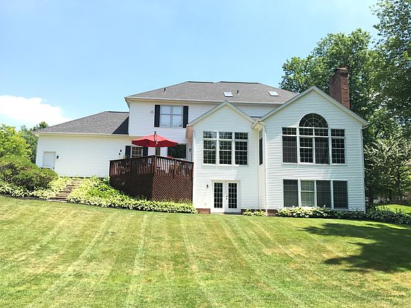 Imagine living in a wonderful, golf course development when looking out your front door, but seeing a private, park-like setting including a stream and pond when looking out your back door! This well built home has over 3500 sq feet on the first two levels, with an additional 1300 sq ft of living area in the open, finished walk out basement with wet bar that overlooks the acre lot. The lower level could also be used as a possible in-law suite. Many updates including a new roof, new furnace, new air conditioner and a new 80 gallon hot water tank to name a few.