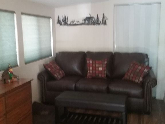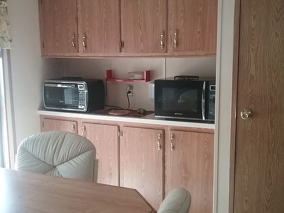 Located in Homestead Mobile Ranch, a 55+ year round park. Space 23. 1992 Redman mobile home 2 bedroom 1 bath, 871 sq ft. Metal roof installed 2018 Rain gutters with leaf filter screens Backs to forest Private deck Fenced and landscaped back yard Totally enclosed Arizona room Levelor custom window shades throughout Customized shower (with bench) Comfort height toilet Full size LG washer and dryer (2018) Central A/C Forced air gas heat (propane) Storage shed with electric Releveled in 2019 Rent paid thru March 2020 Must meet park requirements of one tenant over the age of 55 and pass background check.